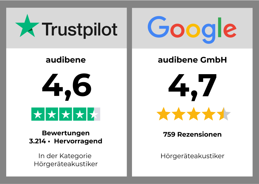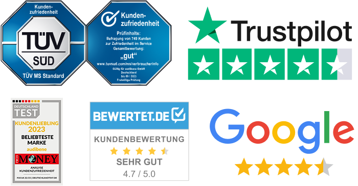 Auf Bewertungsportalen wie Trustpilot oder Google wird audibene regelmäßig mit Bestnoten (Gesamtbewertung: „Hervorragend”) bewertet.